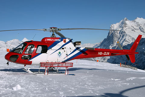 | HB-ZLN of Heli-Linth AG at Lauberhorn with Wetterhorn - Photo by Marco Schmid © 18-Jan-13 |