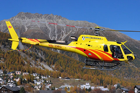 | HB-ZMU of Heli Bernina AG at Samedan with Crasta Mora - Photo by Roland Küng © 18-Oct-25 |