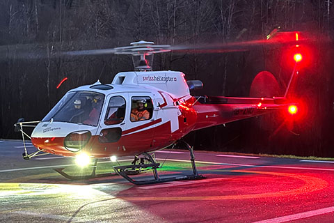 | HB-ZND of Swiss Helicopter AG at Ilanz - Photo by Marco Schmid © 20-Aug-24 | HB-ZND of Swiss Helicopter AG at Schiers-Schrabach - Photo by Roland Küng © 3-Feb-25 |