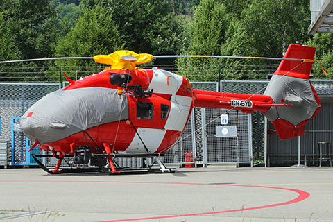 | HB-ZQJ of Rega at Zweisimmen heliport - Photo by Thomas Schmid © 29-Dec-24 | Former HB-ZQJ of Rega as CN-BYD at Rega Zürich - Photo by Martin Stamm © 1-Jun-25 |