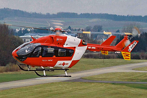 | HB-ZRA as D-HMBN on a pre delivery flight at Donauwörth - Photo by Eurocopter © 2003 | HB-ZRA of Rega at Locarno for instruction flights - Photo by Andrew Bernardi © 10-Feb-03 |
