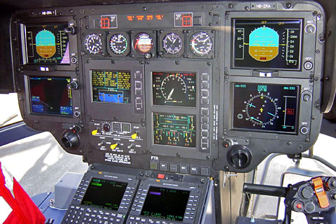 | HB-ZRA of Rega during a presentation at Muttenz - Photo by Stefan Gurtner © 24-May-03 | The cockpit panel of HB-ZRA - Photo by Gerard Fabich © Jul-03 |