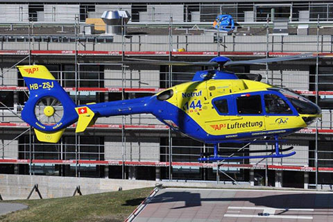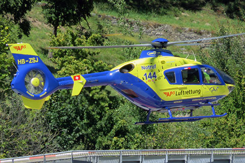 HB-ZSJ of Lions Air Skymedia / AP3 Luftrettung at Chur hospital - Photo by Roland Küng © 5-Mar-19 | HB-ZSJ of Lions Air Skymedia / AP3 Luftrettung at Ilanz hospital - Photo by Marco Schmid © 6-Aug-20 |