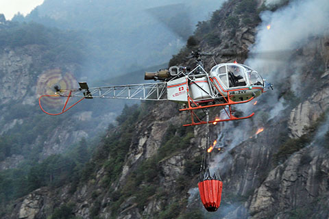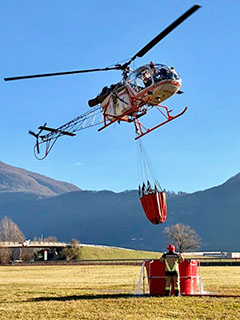| HB-ZVV of Heli-TV SA during fire fighting near Bellinzona - Photo by Christian Suter © 24-Oct-18 | HB-ZVV of Heli-TV SA during fire fighting near Riazzino - Photo by Michele Ceresa © 31-Dec-18 |