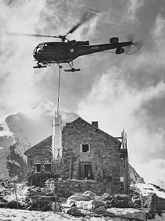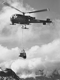 | V-202 of Swiss Air Force up in the mountains - Photo by Flugarchiv Graubünden © 1960's | V-202 of Swiss Air Force on a transport job at Tierberglihütte - Photo by Swiss Air Force © Sep-1968 |