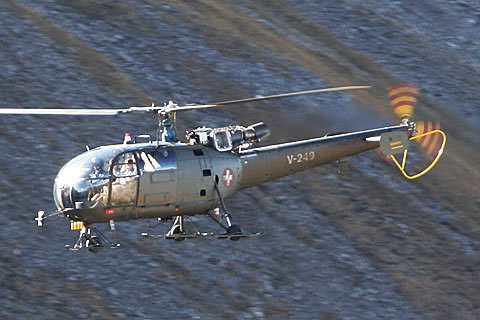 V-249 of Swiss Air Force approaching Axalp - Photo by Markus Herzig © 7-Oct-09 | V-249 of Swiss Air Force at Weissfluhgipfel - Photo by Reto Wetter via Flugarchiv GR © 30-Nov-10 |