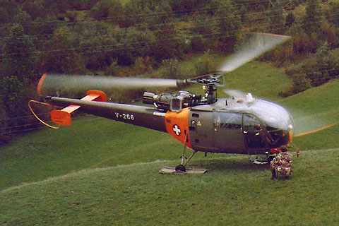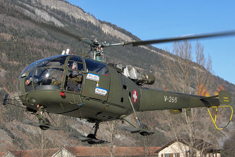 V-266 at Davos flying for the Police during WEF - Photo by Werner Häuselmann © 23-Jan-03 | V-266 of Swiss Air Force at Arolla - Photo by Gabriele Mossi © 24-Apr-06 |