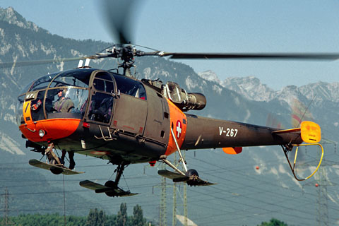 | V-267 at Bex during the Heli-Cup - Photo by Werner Häuselmann © 21-Aug-87 | V-267 of Swiss Air Force crashed into Alpnachersee - Photo Flugarchiv Graubünden © May-91 |