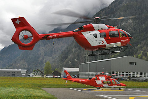 and HB-ZXU operated and owned by Centaurium Aviation AG. Both helicopters
