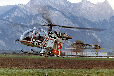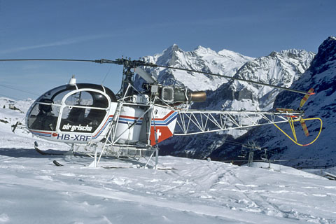 HB-XRF of Air Grischa taking off at Bad Ragaz - Photo by Roland Küng © 19-Oct-90 | HB-XRF of Air Grischa Helikopter AG at Kleine Scheidegg - Photo by Markus Herzig © 22-Jan-94 |