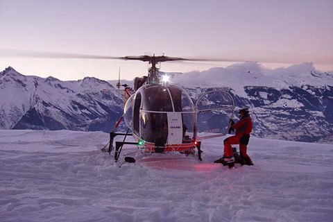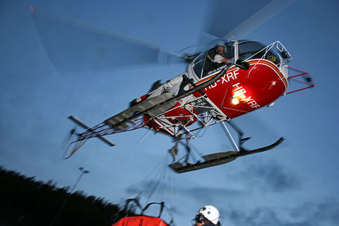 HB-XRF of Air Glaciers SA fire fighting at Lens in darkness - Photo by Dominique Barras © 12-Nov-05 | HB-XRF of Air-Glaciers SA at Lauberhorn - Photos by Markus Herzig © 14-Jan-06 |