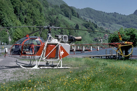 | HB-XTD of Heliswiss in the first livery at Bern-Belp - Photo by Markus Herzig © 3-May-89 | HB-XTD of Heliswiss in the standard livery at Alpnachstad - Photo by Markus Herzig © 7-May-99 |
