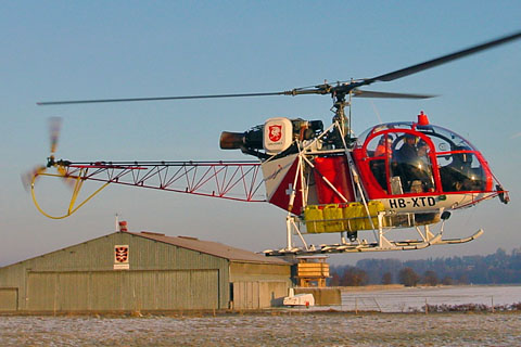 | HB-XTD of Heliswiss leaving Bern-Belp early in the morning - Photo by Stefan Bucheli © 25-Feb-04 | HB-XTD of Heliswiss dryleased to Helog at Chretzen - Photo Corsin Sialm © 2-Jun-05 |
