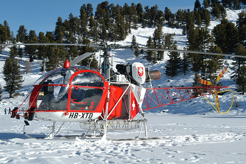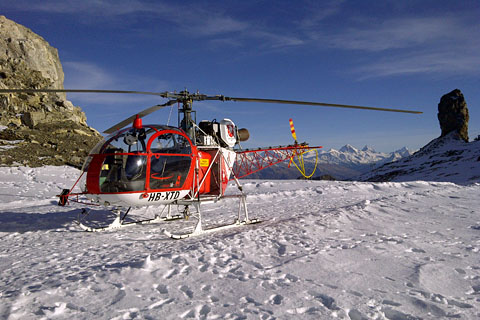 | HB-XTD of Heliswiss in winter wonderland at Dent de Nendaz - Photo by Gerard Fabich © 23-Dec-05 | HB-XTD of Heliswiss leaving Dent de Nendaz - Photo by Werner Häuselmann © 23-Dec-05 |