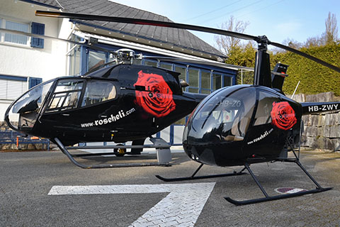 | Future HB-ZWY as G-CCGF of Multiflight at Cromer-Northrepps - Photo by Graham Reeve © 17-Apr-16 | HB-ZWY and HB-ZGY of Rose Helicopter AG at Holziken - Photo by Lukas Fischer © 2022 |